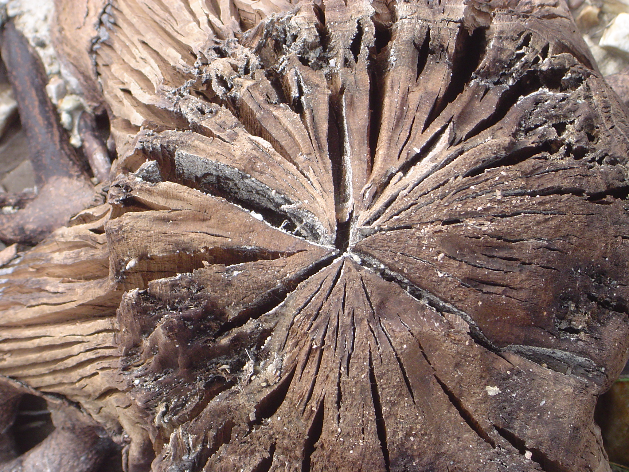 Most interestingly, with the banks revealed it was clear to see that it wasn’t soil that the river had been running through for the past century or so, but sawdust. Layers and layers of this pulp could be seen making up the cross section of the banks. All along the shores of the river, people had been walking on, plants had grown up through this mill dust. It will be interesting to see how quickly it erodes, how much the river will change its course within the next few years. Along the edges of the river I could make out tree stumps that had been submerged for over a century, so quickly smothered with sawdust and sediment that the remained preserved beneath the surface of the water.