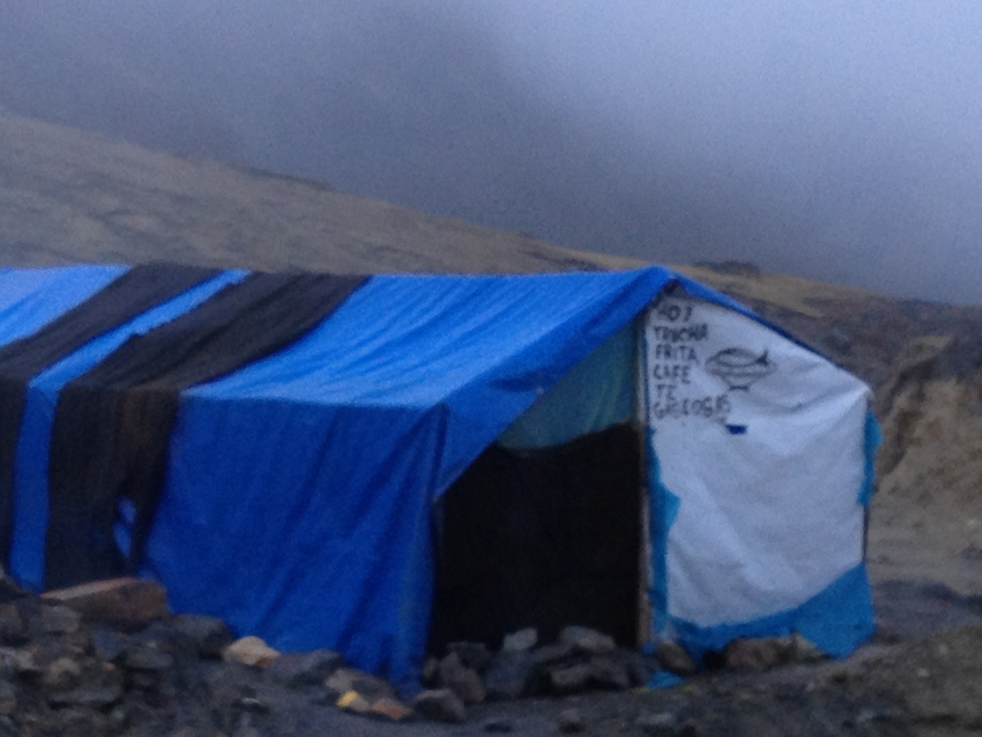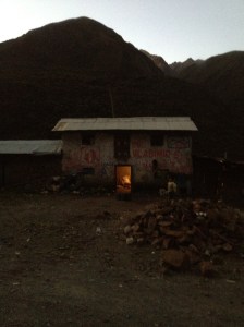 We passed high elevation trout farms, where in small pools people farmed trout and sold it fried on the roadside, the occasional tarp shanty advertising a bare-bones sign of offerings. Eventually the landscape started to green up again, but we didn’t see it for long as the sun stuck to its faithful six o’ clock setting routine. We landed in Marcapata’s main square at six-thirty, in total darkness.