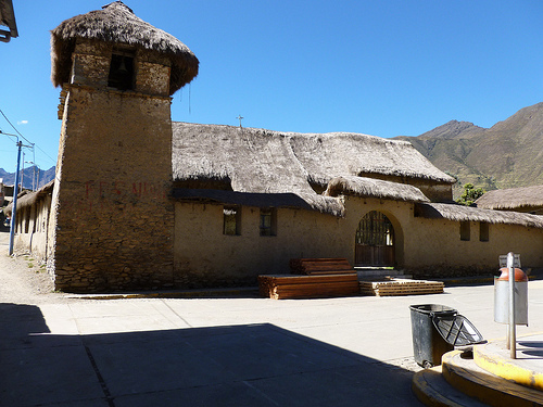 We decided to stay through Sunday, too, to see if we could get a better feel, to see if the market might create a more vivid picture of the town. By noon on Sunday the plaza had filled up. The church–which is 345 years old (one man told me it was 580 years old but the math quickly made that pre-Columbian and…impossible, although this particular man was bent on discussing the miracles of the town)–was finally opened up, and I went to mass. The quiet preaching from the (very white) priest was challenged by noise coming from the plaza. What seemed like a born-again Christian group had set up a table and loudspeakers, and was broadcasting the word into a gathering group. He was broadcasting in both Spanish and Quechua, and I never really caught what he was saying. Even Jason had trouble understanding what was being said, although we could get a general impression. Ben later told me he had seen some shaking and trembling, some moaning and crying. The noise from this group mixed with the quiet preaching (the whole mass was performed in Quechua) of the Catholic church, now brings to mind what a friend in Lima told me at the end of my trip: Peru is full of contradictions.
