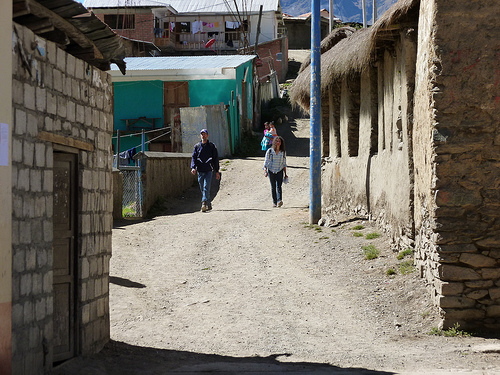 Mass continued as if nothing was different (although one person told us that they had never seen this born-again Christian group in the plaza before). The church was filled mainly with campesinos, some of them wearing their bright orange suits which meant that they worked for CONIRSA, the construction company that had built the road and still employed some people of the town with maintenance projects. Over their orange suits, some of them wore their brightly-colored hand-woven blankets filled with bundles (I’m not sure of what) on their backs. We stayed in Marcapata until late afternoon, paid for our hostel, then stood out on the busy corner waiting for the bus to go through town. We were headed to Cullebrayoc, a community about a half-an-hour east down the road.
