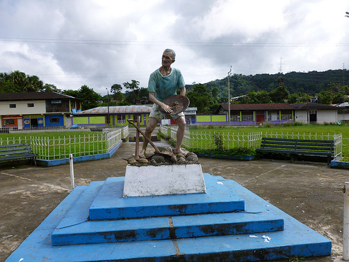 I still have many interviews to transcribe, and much research to do, before I can present a complex understanding of the gold mining dynamics along the Interoceanic Highway. I’m not at all proposing to be an expert on the subject (not yet, anyway). But this much is clear: since the highway has been paved bulldozers and front loaders have had a much easier time entering the landscape around Quincemil. In the past few years–literally few years–streams that used to be pristine–rich with deer, jaguar, monkeys, and birds–are now muddy, treeless swatches full of chemicals. Around Quincemil new neighborhoods have popped up within the last five years. One, called Nuevo Camanti (the district where Quincemil is), is referred to, tongue in cheek, as Nuevo Huepetuhe, after the worst mining disaster happening in the Amazon. And what’s also clear is that people in Quincemil are upset–with the way nobody’s considering other plans for development. That large, international companies have so much power. That their health is threatened, yet no one is really reaping benefits from the gold boom. Much more to come on this.